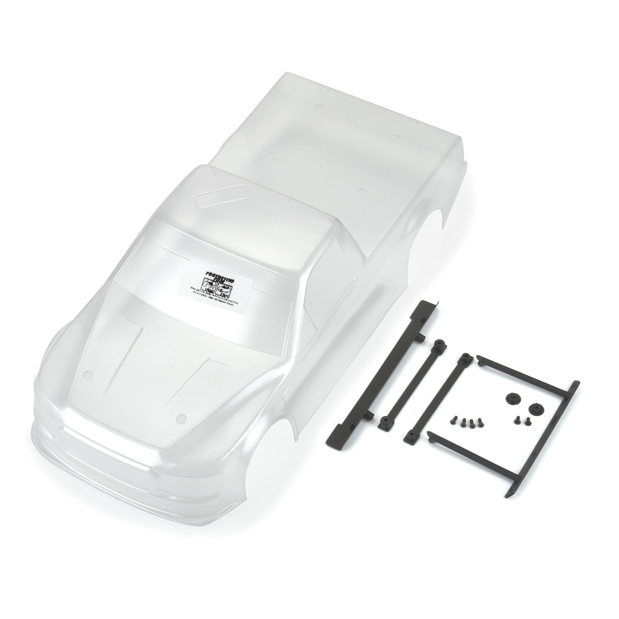 This body is Made in the USA from durable high-quality polycarbonate with paint-then-peel overspray film. Also included is a custom rear spoiler with mounting hardware to complete the body. Pair with Pro-Line Goodyear® Eagle Tires (PRO1025910) that have a larger sidewall for the correct appearance.