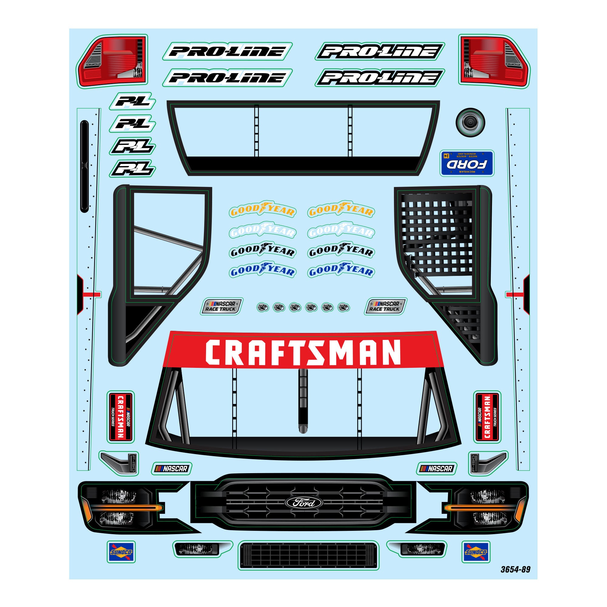 Let's go truck racing! Introducing the 2024 Ford® F-150 NASCAR® Truck Series Clear Body for Losi® NASCAR® Racecar! Pro-Line has captured all the details of this Ford® F-150 official NASCAR® truck body for truck fans everywhere. Officially licensed by both NASCAR® and Ford®, this body comes clear so that you can paint it up in your favorite NASCAR® driver's scheme or create your own. It includes detailed graphics such as windshield frames, sponsor logos, and side skirts.