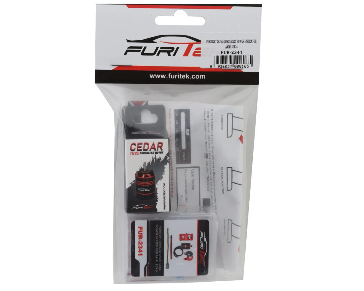 Furitek SCX24 Torpedo Brushless System. This powerful and versatile Torpedo brushless system is equipped with the Python Pro 40A and the Cedar 3456kV brushless Inrunner motor to provide your Axial SCX24 with a buttery smooth throttle response FOC technology is known for and the control and torque of the of the powerful Inrunner Cedar motor. This combo will take your SCX24 to another level of high performance with so many top of the line features and technology!