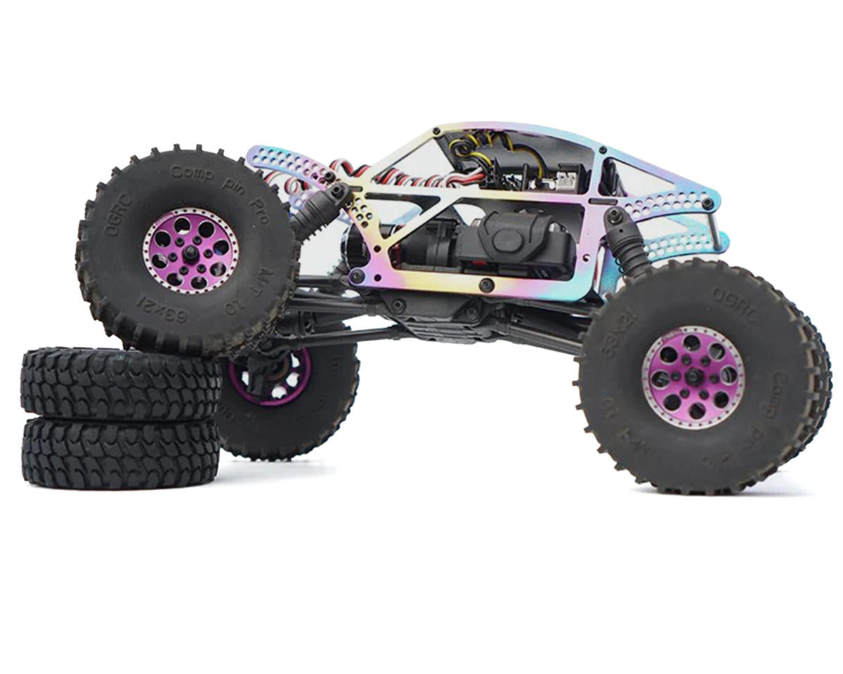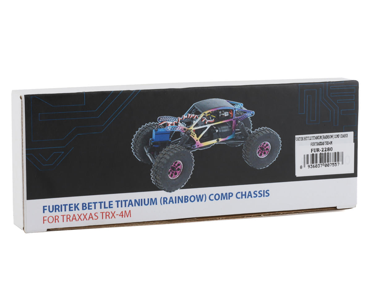 This is the Furitek Traxxas TRX-4M Beetle Competition Titanium Chassis Kit. This optional titanium Beetle Comp style frame is intended for the Traxxas TRX-4M micro crawler as a rigid lightweight upgrade that converts your TRX-4M to a competition style rig to experience a high level crawling performance. The Beetle chassis features more clearance between the rails due to the no bumper or hood style, which gives the servo all the room needed to move freely without any contact or rubbing against the rails which results in limiting the articulation in the front. In addition, eliminating the bumpers greatly improved the approach and departure angle allowing your TRX-4M to crawl over the impossible! This Beetle chassis has a lower center of gravity design with multiple shock mounting positions to aid in crawling performance and expand your tuning options!