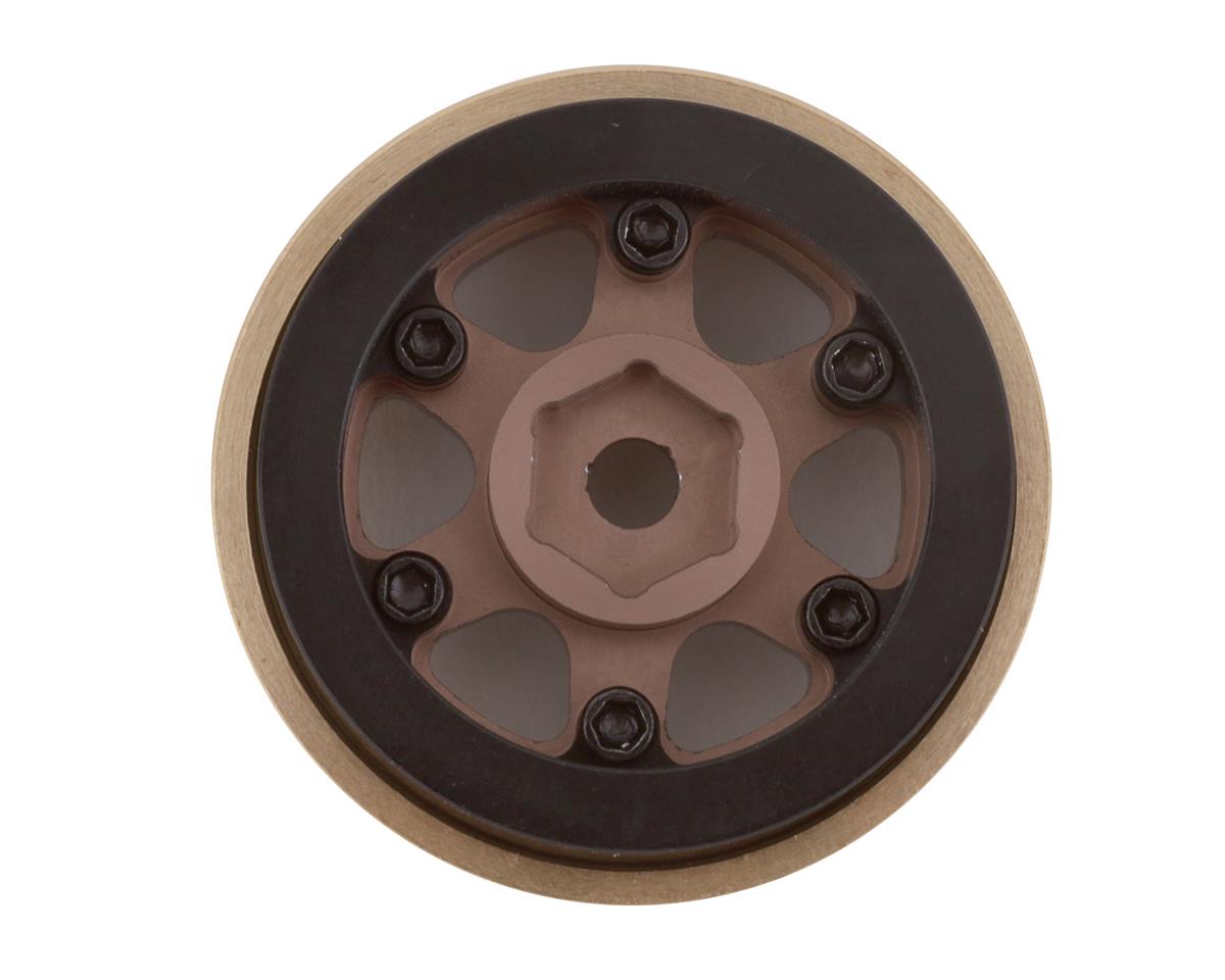 SSD SCX24 1.0” Aluminum/Brass Challenger Wheels are a unique option for the SCX24 that combines stock wheel offset in a hybrid aluminum and brass beadlock configuration. Compatible with 1.0" size tires, these three piece wheels look incredible and are a great way to dress up your SCX24. Plus, the additional weight of the aluminum and brass design adds 24 grams of weight per wheel (96g for four wheels), and will help keep your mini rig stuck to the rocks when the trail gets technical. Package includes two wheels.